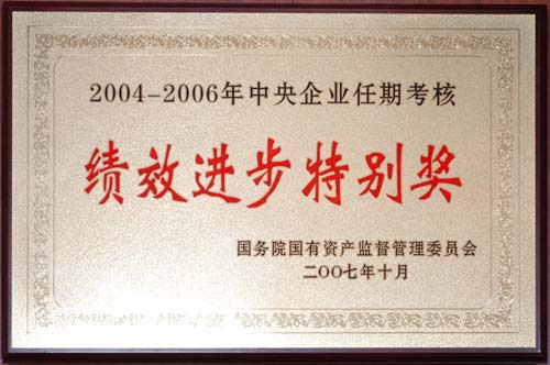 中国长航获得“2004-2006年中央企业任期考核绩效进步特别奖”