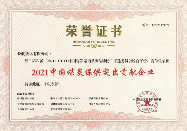 2021年,上海公司荣获“中国煤炭保供突出贡献企业”称号