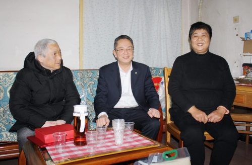 94岁高龄的原长航电机厂党委书记、离休干部李钦家里已是浓浓的年味,李老在香港工作的儿孙已经回家团圆。张锐高兴地给两老拜年,祝老人家身体健康、万事如意。李老向张锐介绍逃难到香港、在香港当学徒以及回到内地后参加游击队,和招商局集团元老、中国“改革先锋”袁庚一起在东江纵队参加革命的成长经历。张锐交待同行的离退休工作人员说,离退休干部曾经为中国革命和企业发展作出过贡献,是企业宝贵的财富,要想方设法解决好离退休干部的困难。李老表示,企业对他们照顾得很好。分别时,张锐真诚地提醒二老要注意身体,适量运动,并表示明年再来看望两位老人家。