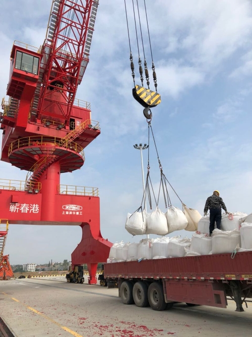 9月1号上午8时许,湖北蕲春码头。随着一声令下,20余名作业人员各就各位,2台红色的门座起重机同时起吊作业,首批件杂货开装。此举标志着长航货运有限公司(以下简称“长航货运”)蕲春码头正式开港营业。