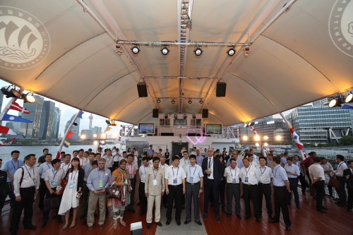 7月10日,由上海市交通委、上海市虹口区承办的2018中国航海日“北外滩之夜”主题活动在上海长江轮船有限公司(以下简称“上海公司”)所属上海快乐船长游船有限公司(简称“游船公司”)“船长5”号游船举行。来自上海市交通委、虹口区、航海日主论坛、航运论坛夏季峰会、长江经济带联盟代表等约300位政府部门代表、行业专家、企业代表登船参加此次活动。