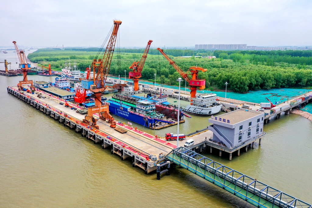 3.水上综合服务区:镇江水上综合服务区位于长江下游大型船舶集散地——长江黄金水道与京杭大运河十字交汇水域的定易洲锚地。服务区设置绿色航运服务站、绿色船民服务站、防污染服务站、应急服务站、绿色能源服务站等五个功能区,为锚泊船舶提供免费生活垃圾接收、免费生活污水接收、免费水上交通服务,是目前长江干线规模最大、服务功能最全的水上绿色综合服务区。